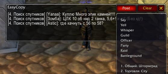 Очень удобный многофункцианальный аддон, для того чтобы скопировать текс достаточно кликнуть по времени в чате около нужного вам поста :)